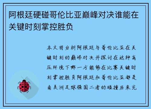 阿根廷在世界杯中的生死战历来都是球迷们关注的焦点,而对于球队的战术部署与策略分析也一直是讨论的热点。本文将结合阿根廷在世界杯生死战中的关键战术,进行详细解析。文章将从四个方面展开讨论:阿根廷的防守策略、进攻打法、球员的关键作用、以及临场调整的战术变化。每个方面将通过具体战例,深入分析阿根廷如何通过精...